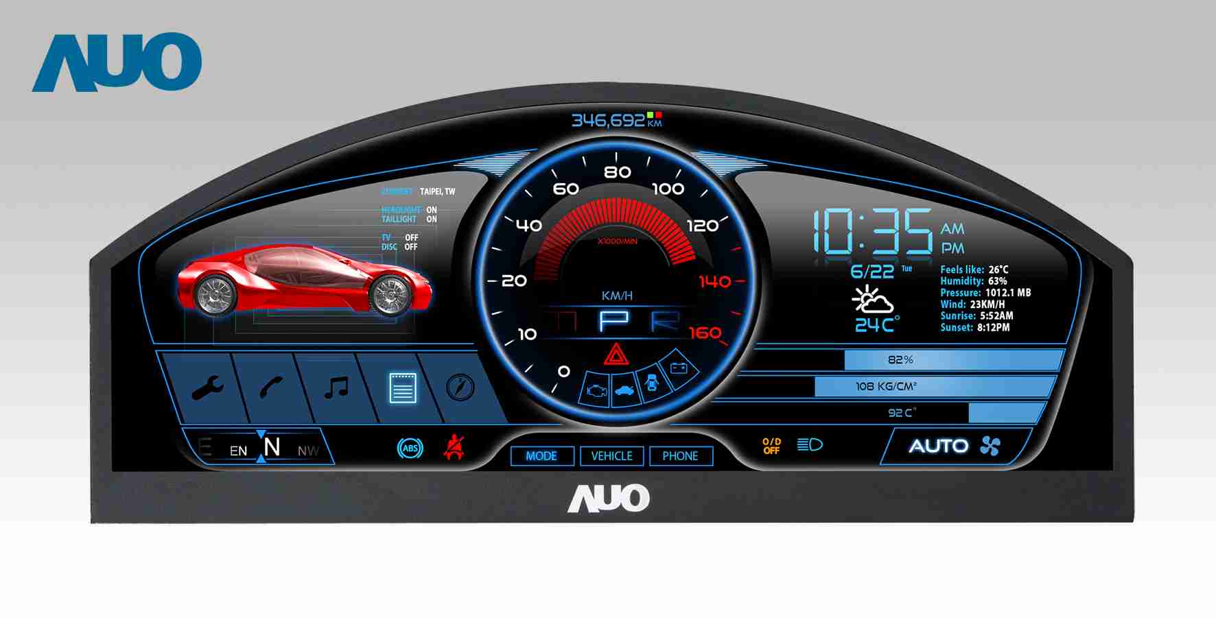 万利 12.3吋超高解析异型切割车用面板,,拥有流线外观及精细画质